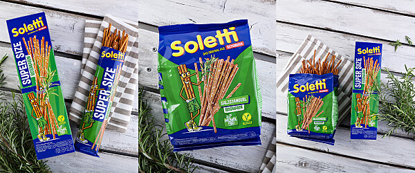 Allen voran erweitert Soletti mit einer feinen Würze Rosmarin das Sortiment des beliebten Klassikers! Perfekt zum Teilen, Dippen oder einfach Wegknabbern. Ab sofort in der beliebten 230 g Packung und als Soletti SuperSize Variante verfügbar!